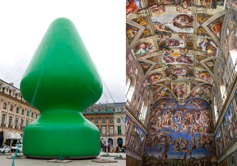 Most modern art reflects today’s anything-goes foundation and cannot compare to Michelangelo’s frescos. Who would argue they are the same except the deranged? Architecture is no better.